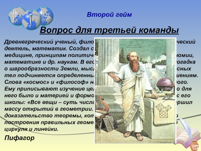 14.Назовите древнегреческого математика, который был философом и спортсменом?