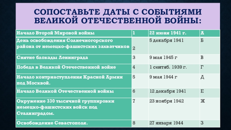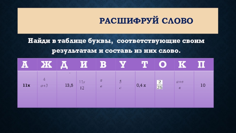 Найди в таблице буквы, соответствующие своим результатам и составь из них слово.