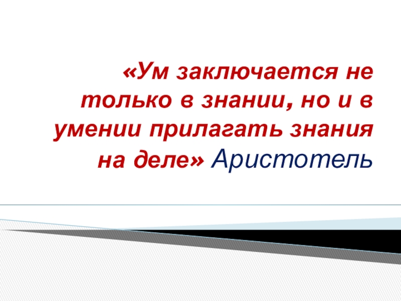 «Ум заключается не только в знании, но и в умении прилагать знания на деле» Аристотель