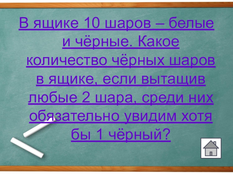 Слайд 33В ящике 10 шаров – белые и чёрные. Какое количество чёрных