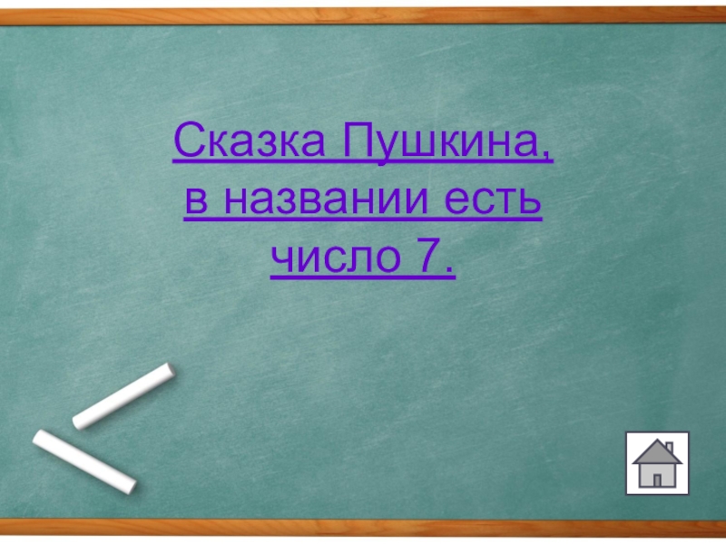 Слайд 10Сказка Пушкина, в названии есть число 7.