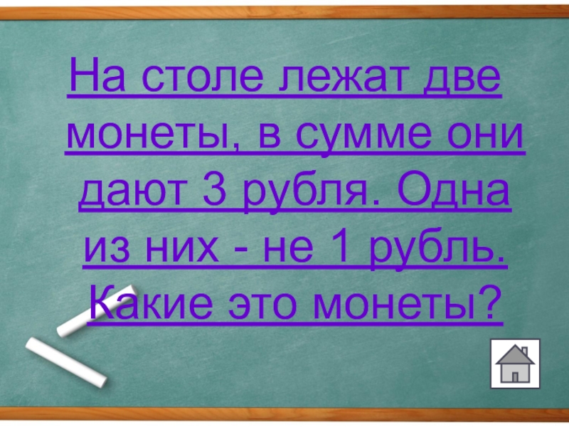 Слайд 25На столе лежат две монеты, в сумме они дают 3 рубля.