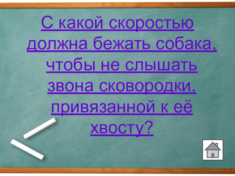 Слайд 26С какой скоростью должна бежать собака, чтобы не слышать звона сковородки,