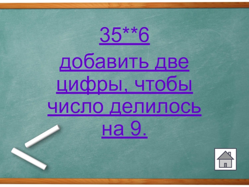 35**6 добавить две цифры, чтобы число делилось на 9.