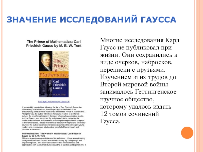 Слайд 10ЗНАЧЕНИЕ ИССЛЕДОВАНИЙ ГАУССА