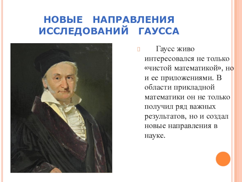 Слайд 11НОВЫЕ НАПРАВЛЕНИЯ ИССЛЕДОВАНИЙ ГАУССА