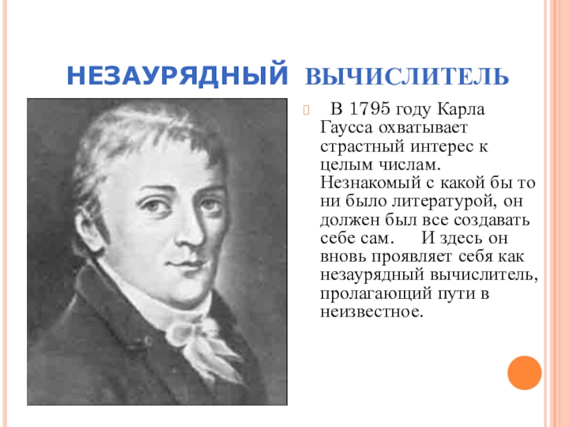 В 1795 году Карла Гаусса охватывает страстный интерес к