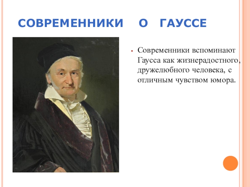 Современники вспоминают Гаусса как жизнерадостного, дружелюбного человека,