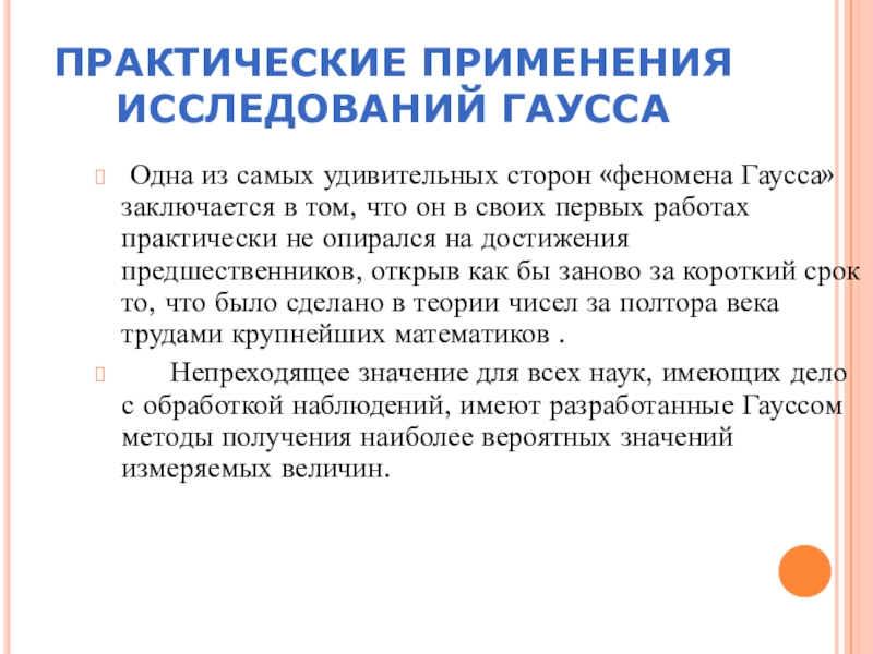 Слайд 14ПРАКТИЧЕСКИЕ ПРИМЕНЕНИЯ ИССЛЕДОВАНИЙ ГАУССА