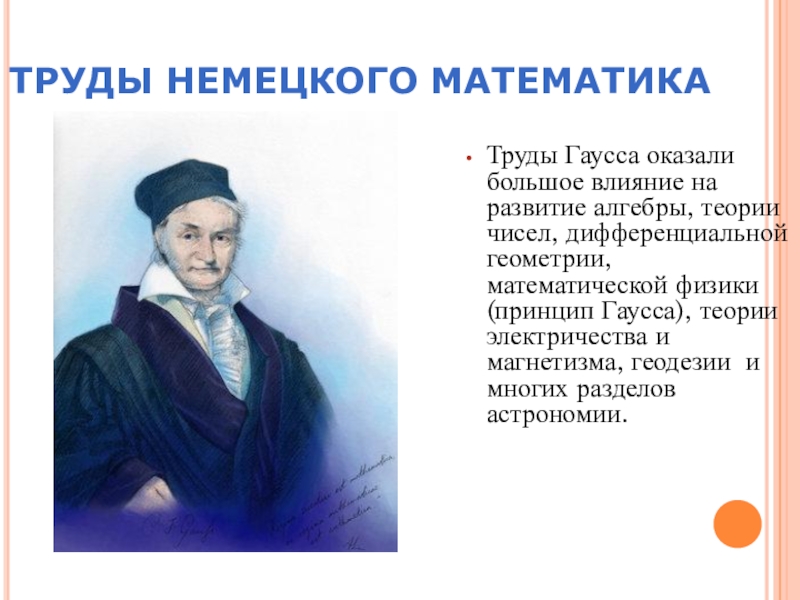 Труды Гаусса оказали большое влияние на развитие алгебры, теории