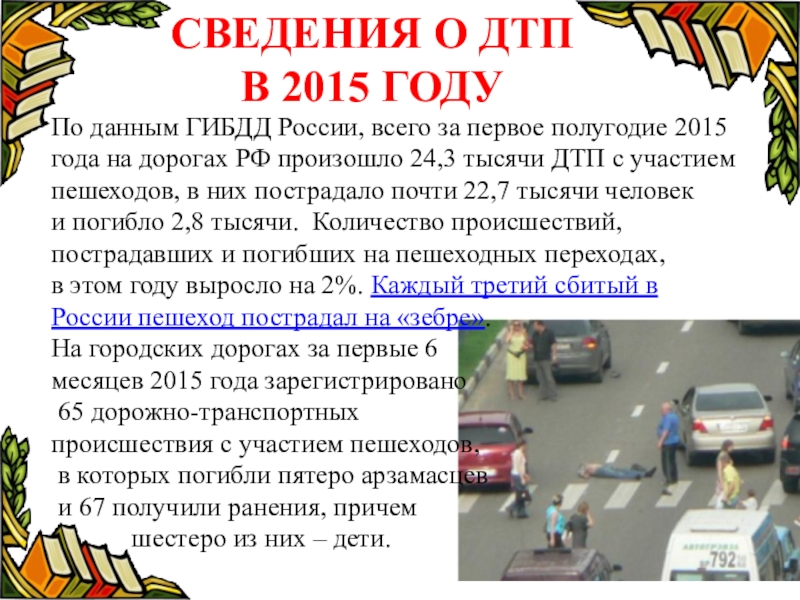 2,5м. Если учитывать боковой интервал 1,5 м дороги и размеры машины 1,5 м, а также предположить, что водитель не собирался тормозить и думал, что успеет «проскочить», то возможно ДТП.