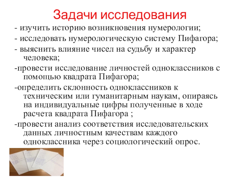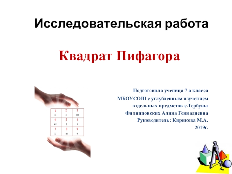 3. Исследовала метод построения квадрата Пифагора и установила взаимосвязь чисел с сущностью человека. что все психологические портреты, составленные мною с помощью квадрата Пифагора имеют сходство с характерами личностей моих одноклассников. Сущность человека напрямую зависит от чисел, его окружающих.