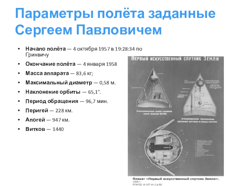 Слайд 19Параметры полёта заданные Сергеем Павловичем