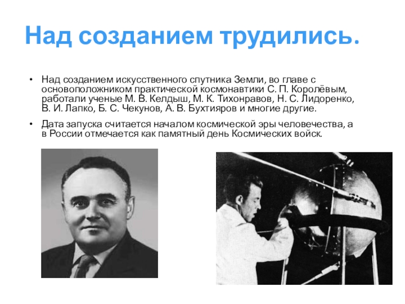 Над созданием искусственного спутника Земли, во главе с основоположником