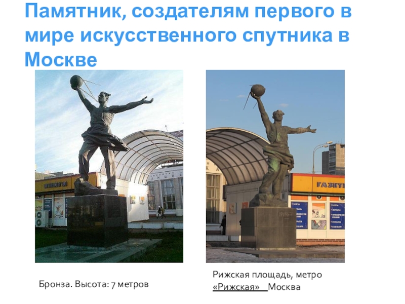 Слайд 21Памятник, создателям первого в мире искусственного спутника в Москве