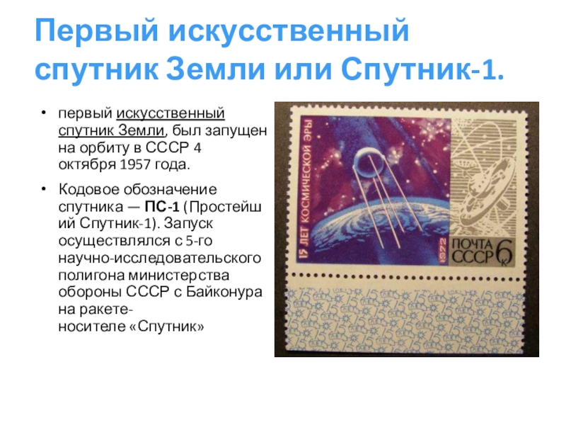 первый искусственный спутник Земли, был запущен на