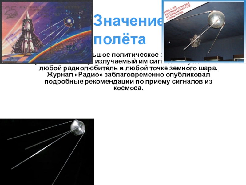 Спутник имел большое политическое значение. Его полёт увидел весь мир,