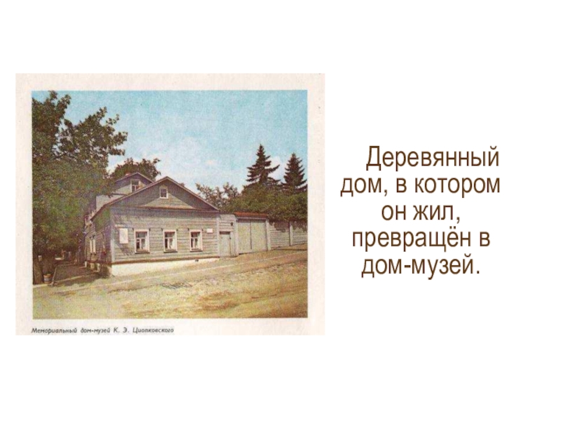 Слайд 12Деревянный дом, в котором он жил, превращён в дом-музей.