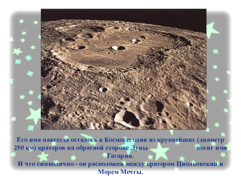 км) кратеров на обратной стороне Луны носит имя Гагарин.