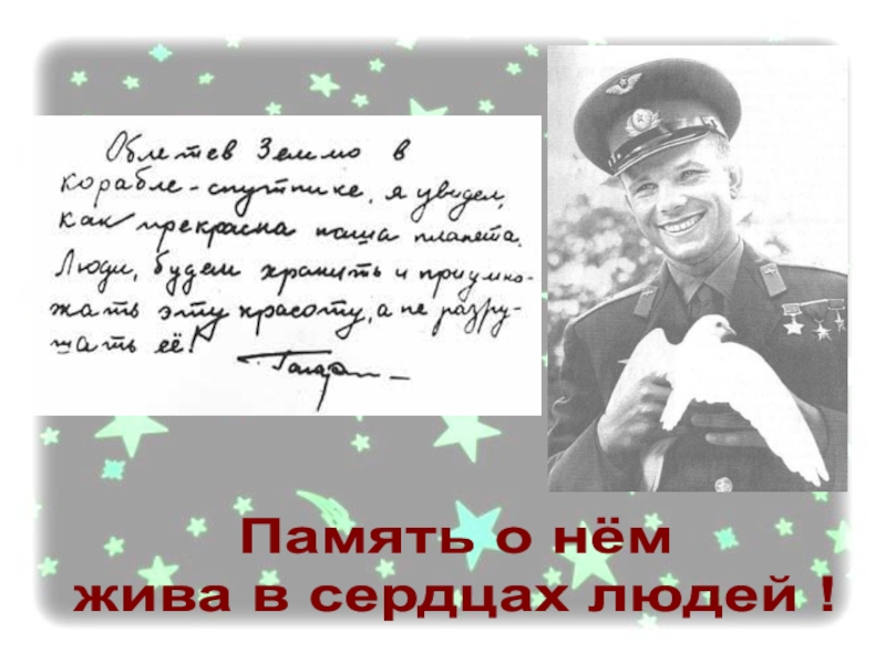 Слайд 2712 апреля 1961 г. Юрий Гагарин первым из землян совершил космический