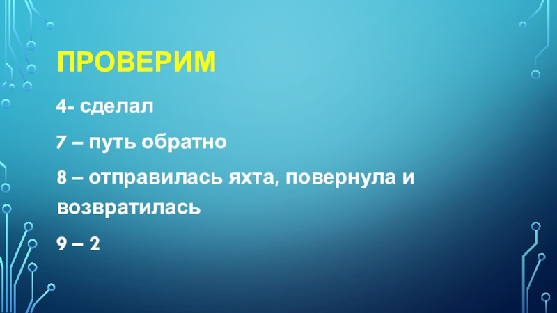 Проверим 4- сделал7 – путь обратно8 – отправилась яхта, повернула и возвратилась9 – 2