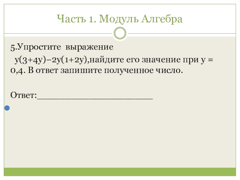 Слайд 5Часть 1. Модуль Алгебра