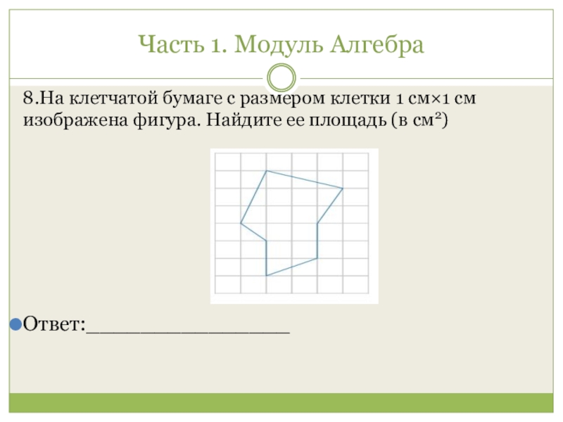 Часть 1. Модуль Алгебра 8.На клетчатой бумаге с размером клетки 1 см×1 см изображена фигура. Найдите ее