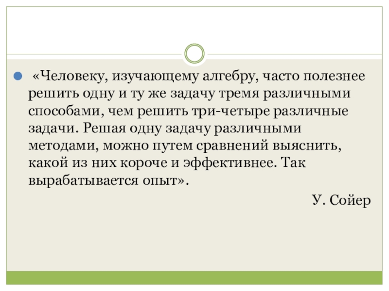 «Человеку, изучающему алгебру, часто полезнее решить одну и ту же задачу тремя различными способами, чем решить три-четыре