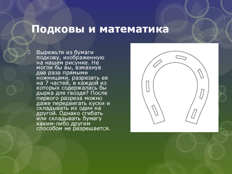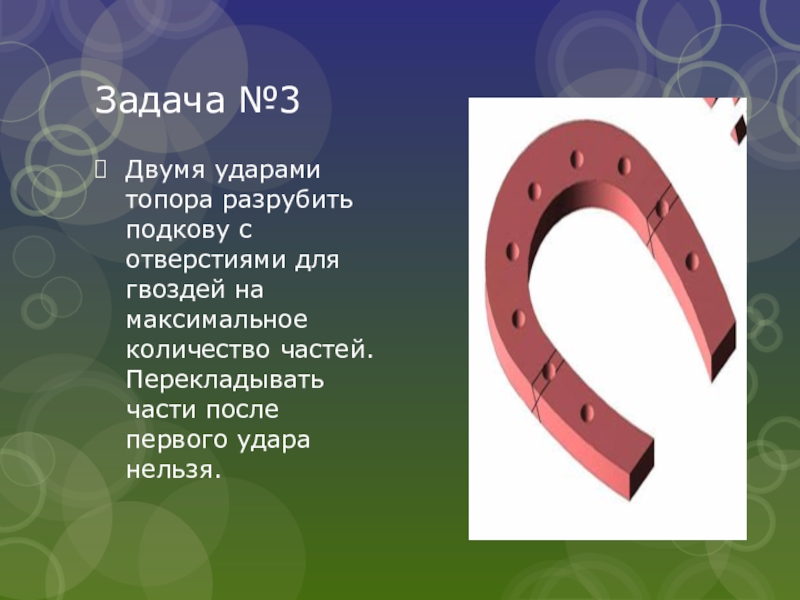 Как двумя ударами топора разрубить подкову на шесть частей, не