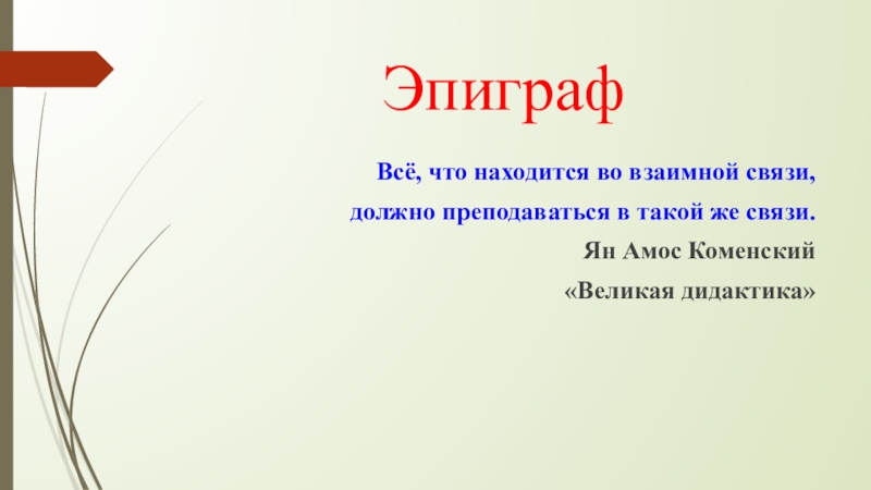 ЭпиграфВсё, что находится во взаимной связи, должно преподаваться в такой же связи.Ян Амос Коменский«Великая дидактика»