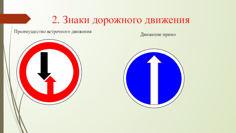 2. Знаки дорожного движенияПреимущество встречного движенияДвижение прямо