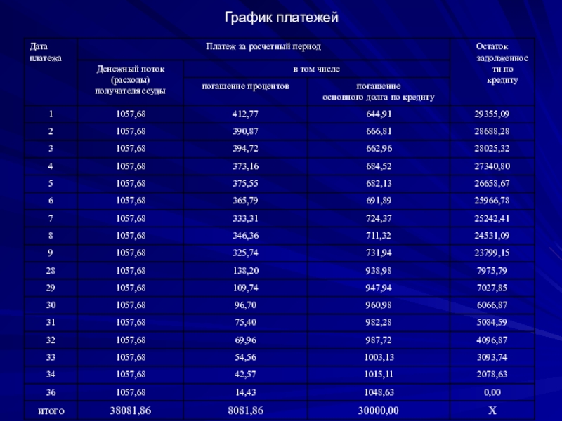 На данном примере видим, что переплата за кредит составила 8081,86 рублей