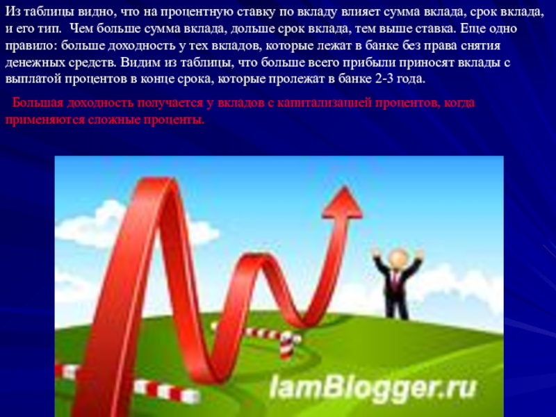 Слайд 10Из таблицы видно, что на процентную ставку по вкладу влияет сумма