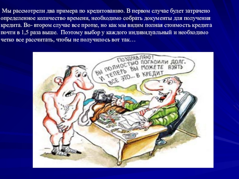 Слайд 15 Мы рассмотрели два примера по кредитованию. В первом случае