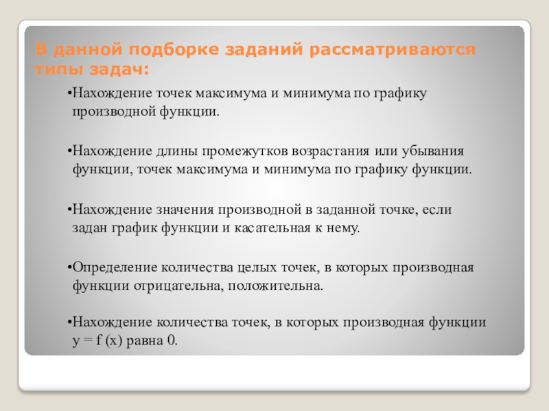 Знак производной (углового коэффициента) можно определить по рисунку, например, так: если касательная «смотрит вверх» то производная положительна, если касательная «смотрит вниз» - отрицательна (если касательная горизонтальна, то производная равна нулю).