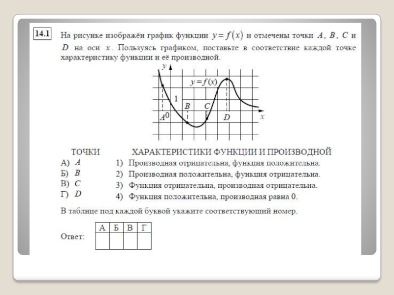 Найдем точки, в которых f /(x)=0 (это нули функции).