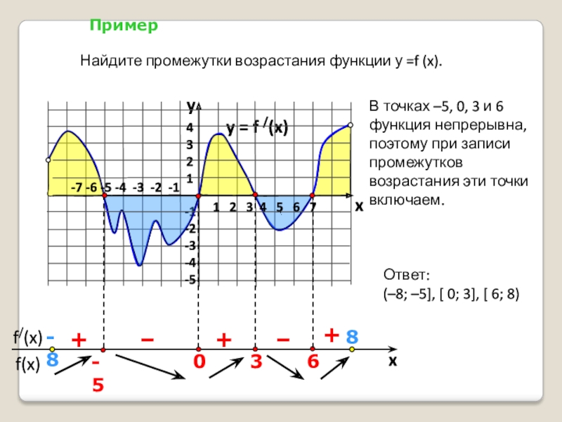 функция непрерывна, поэтому при записи промежутков возрастания эти точки включаем.