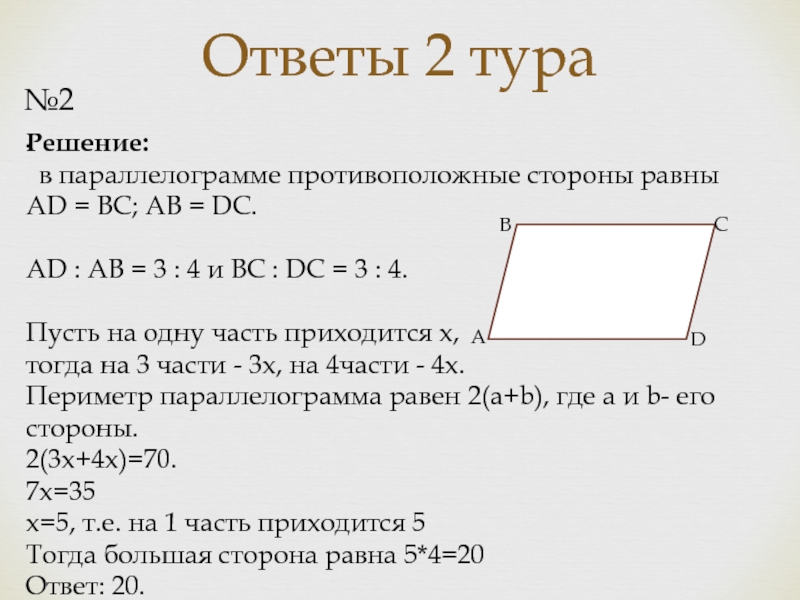 № 2. Две стороны параллелограмма относятся как 3 : 4,