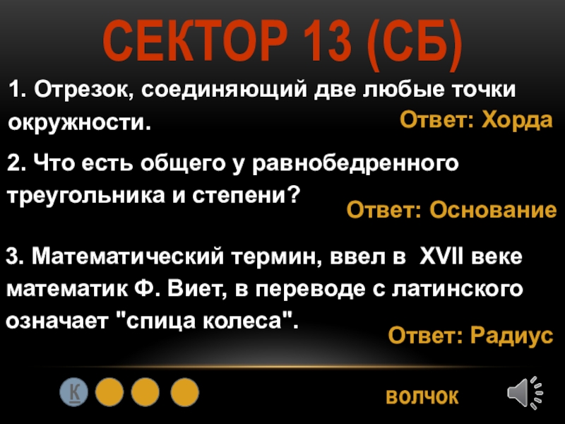 3. Математический термин, ввел в XVII веке математик Ф. Виет, в переводе с латинского означает "спица колеса".