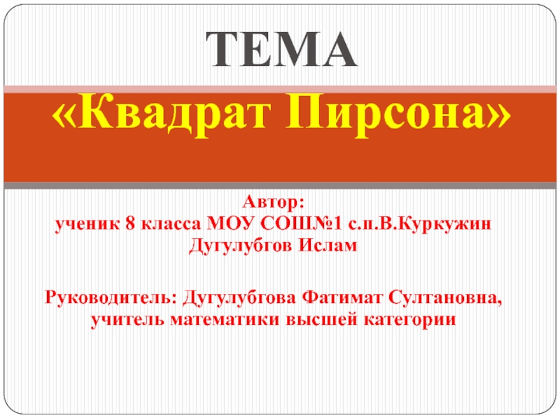 Руководитель: Дугулубгова Фатимат Султановна, учитель математики высшей категории