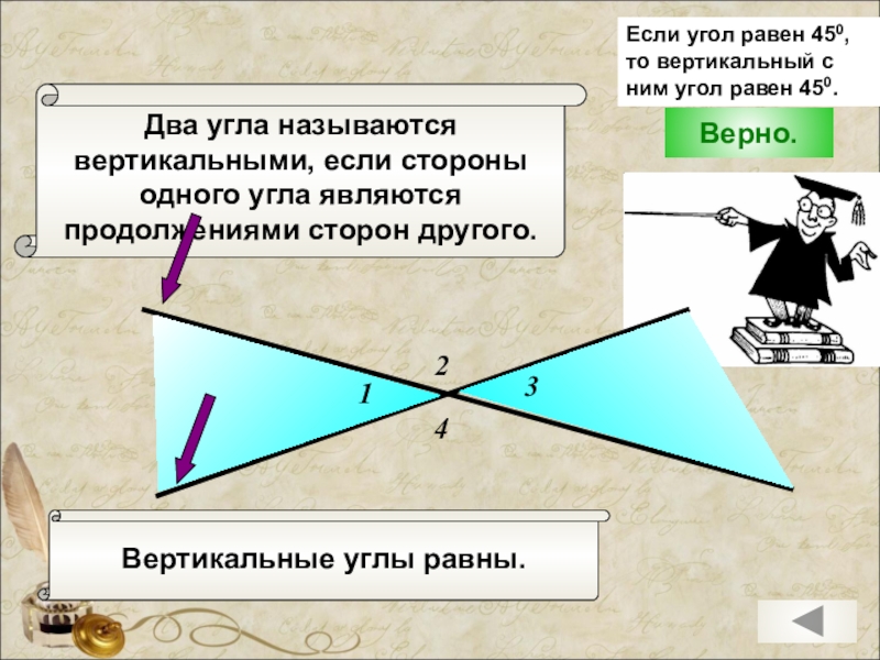 Если угол равен 450, то вертикальный с ним угол равен 450.