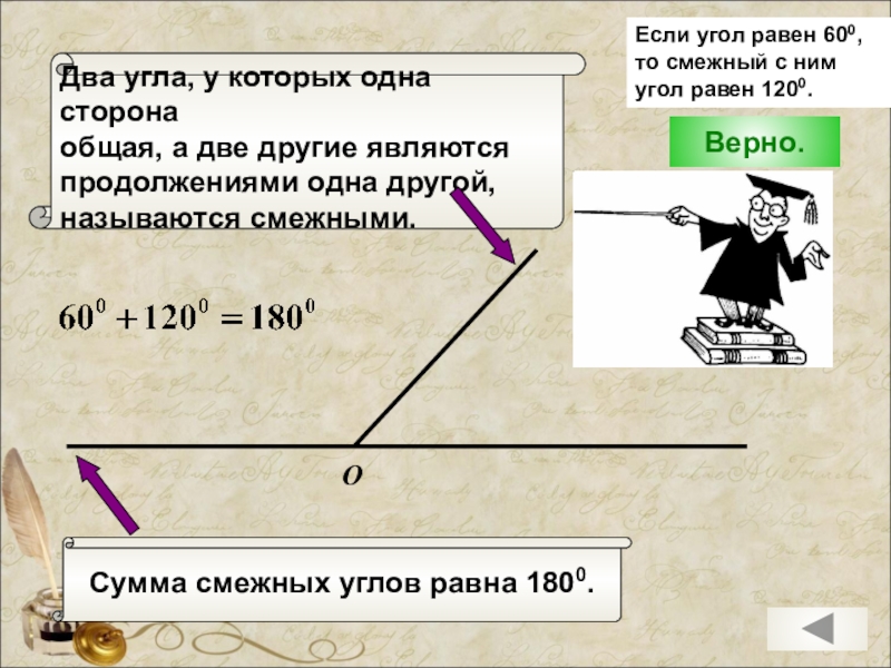 Если угол равен 600, то смежный с ним угол равен 1200.