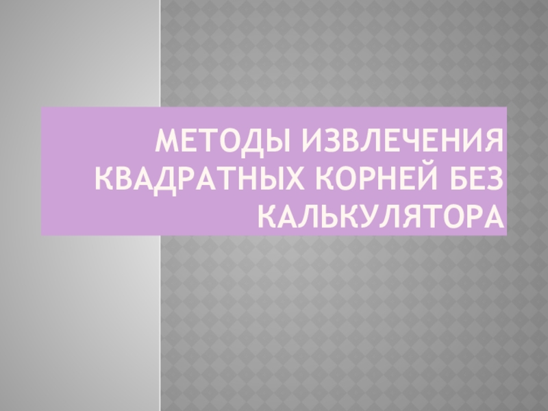 Слайд 1Методы извлечения квадратных корней без калькулятора