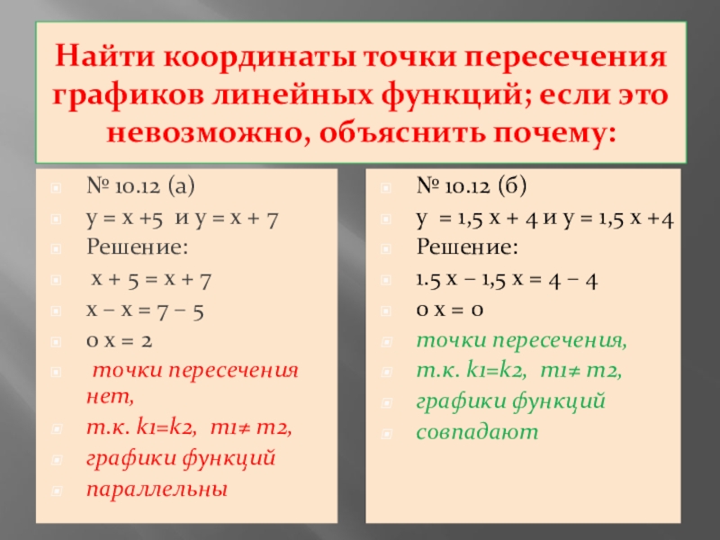 у = х +5 и у = х + 7