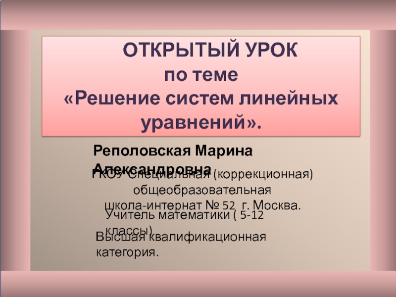 «Решение систем линейных уравнений».