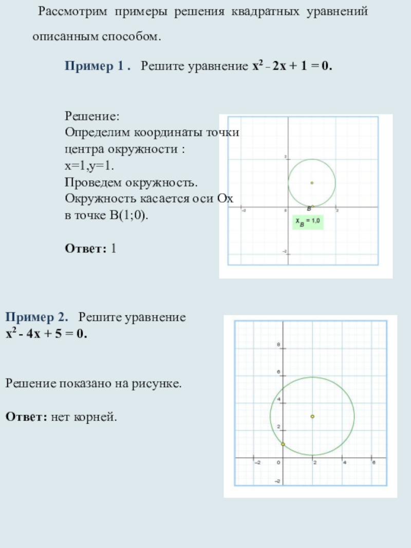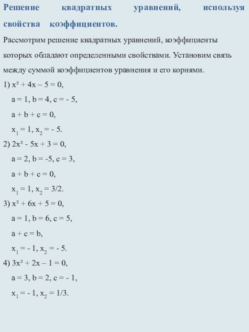 Рассмотрим примеры решения квадратных уравнений описанным способом.
