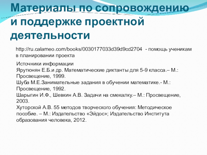 Хуторской А.В. 55 методов творческого обучения: Методическое пособие. – М.: Издательство «Эйдос»; Издательство Института образования человека, 2012.