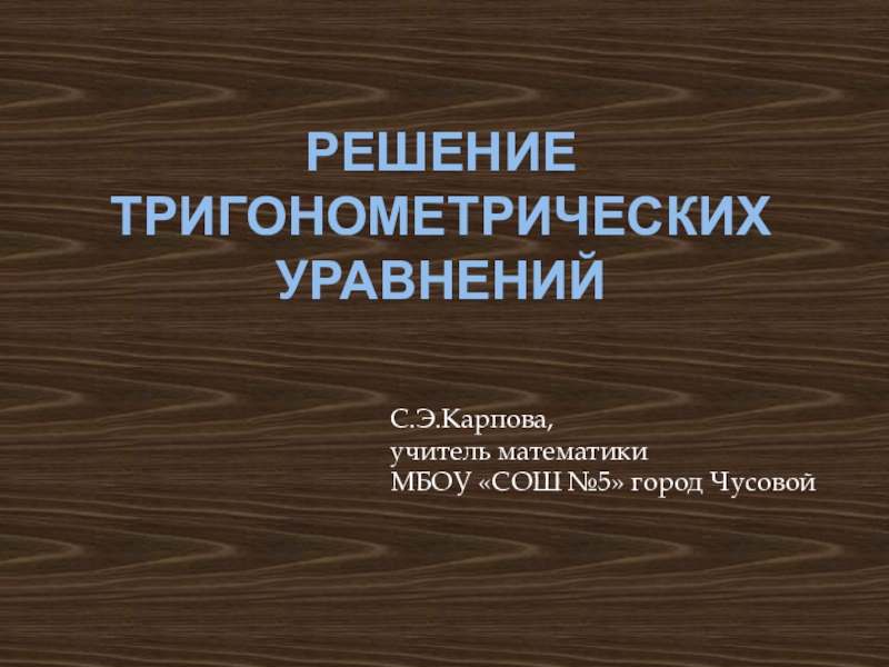 решение тригонометрических уравненийС.Э.Карпова,учитель математики МБОУ «СОШ №5» город Чусовой