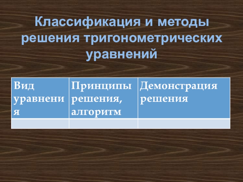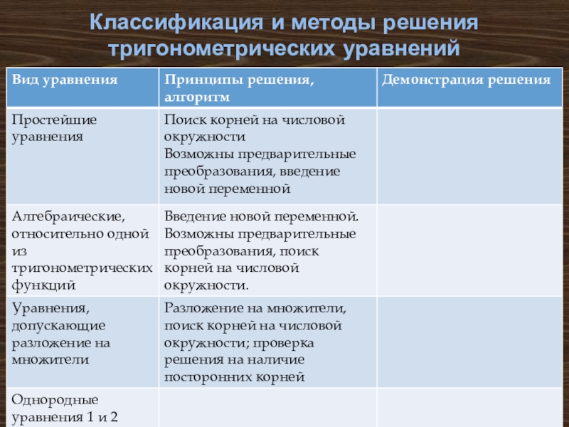 Слайд 2Классификация и методы решения тригонометрических уравнений