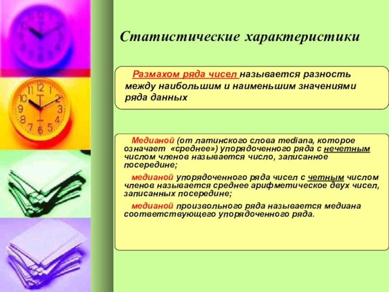 Медианой (от латинского слова mediana, которое означает «среднее») упорядоченного ряда с нечетным числом членов называется число, записанное посередине;
